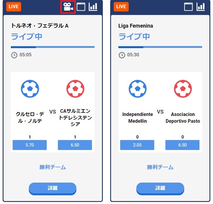 また、ベットした試合をリアルタイムでみるだけじゃなくライブベットができる試合もあります。