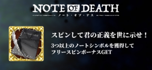 - 当サイト限定【Note of death】フリースピン100回分