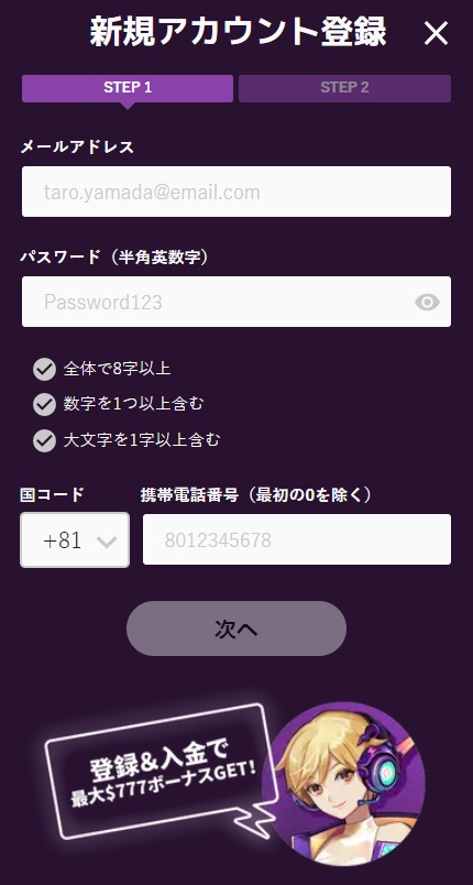 カジノミーの登録方法は以下の方法で行ってください。