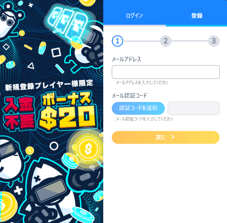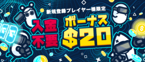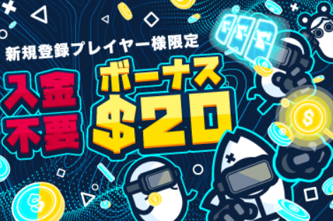 初回入金不要ボーナスは【スロット】のみご利用いただけます。出金条件は5倍です。