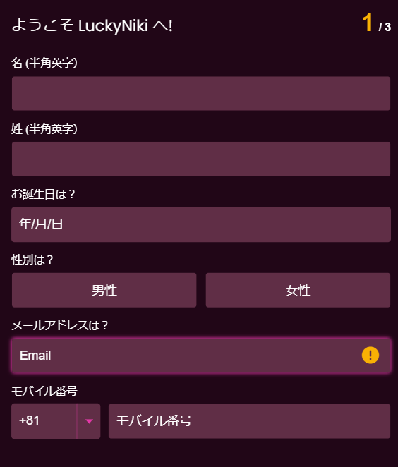 ラッキーニッキーカジノの登録方法は以下の手順で行ってください。