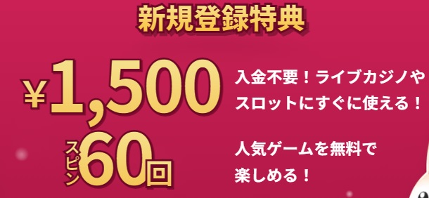 入金不要ボーナス 1500円&フリースピン合計60回転