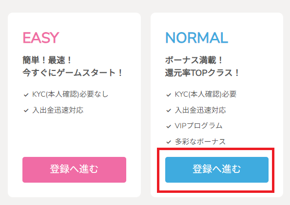 入金不要ボーナスを受け取るには【NORMAL】版を選択します。