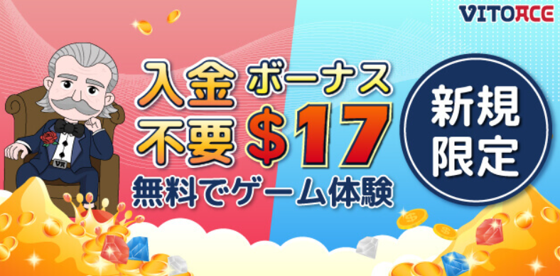 ヴィトエースカジノでは、新規登録すると入金不要ボーナスとして$17貰えます。