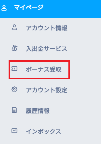 三マークを選択し【ボーナス受取】ボタンを押します。